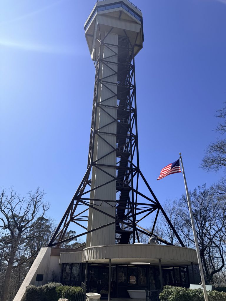 There were also lots of hiking trails around the park. One started in our campground. It was a big uphill section to start, but the view from the top was beautiful. You could see all of the town. We continued hiking and got to the observation tower. We went up the elevator to the top and had even better 360-degree views. They also had a little bit of history about the area. Like Al Capone, the famous mob boss used to love the bath houses. Also, Babe Ruth used to play here during spring training. Bill Clinton also graduated from Hot Spring High School. In total, it was about a 4-mile hike and it felt all uphill but overall it was a cool place to see.