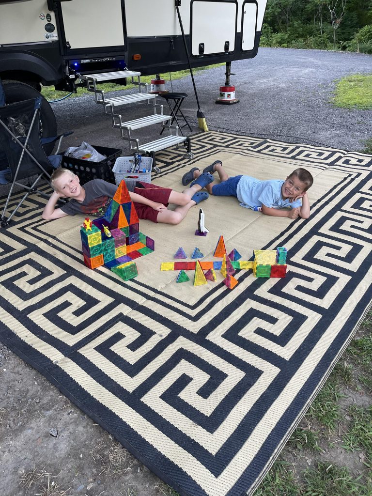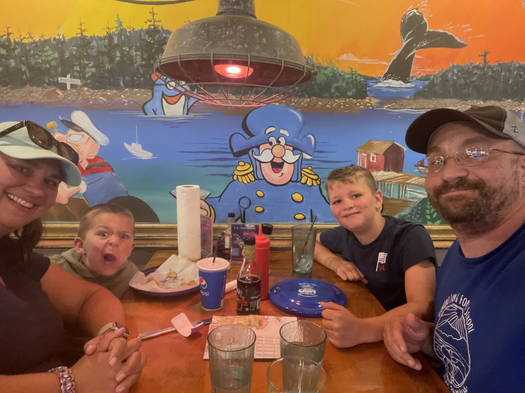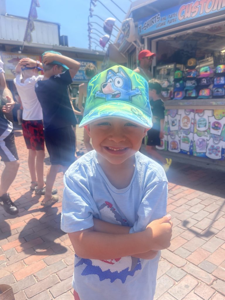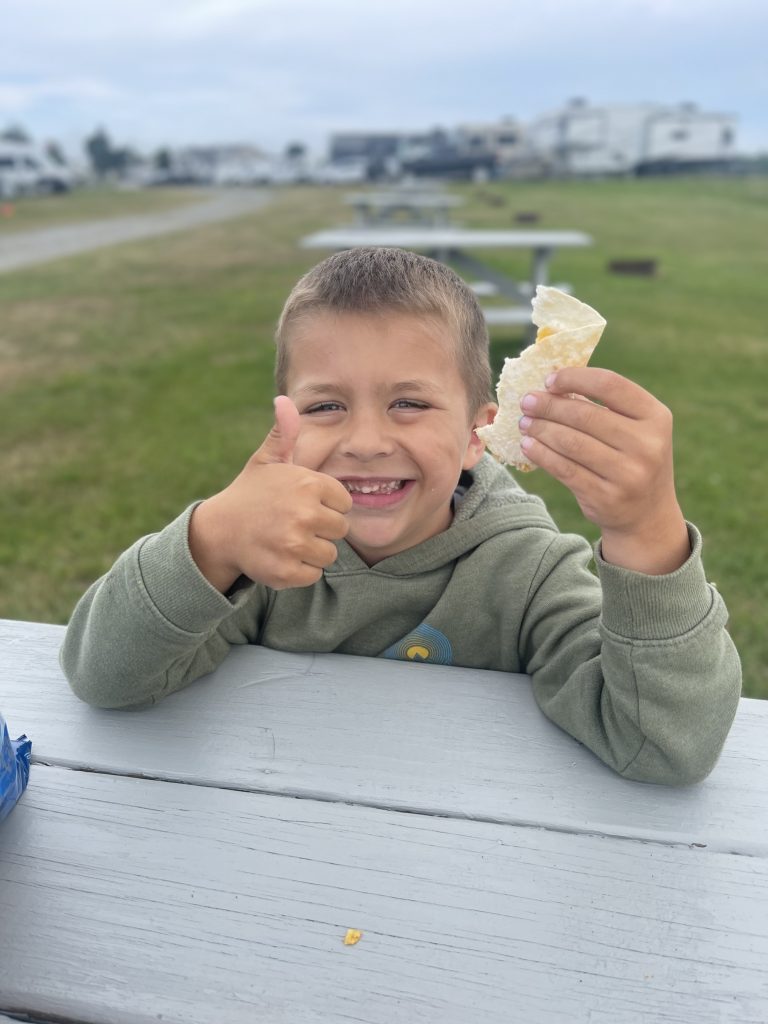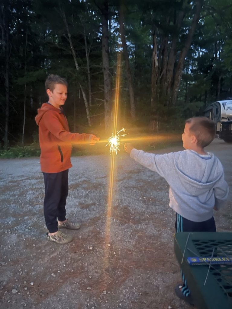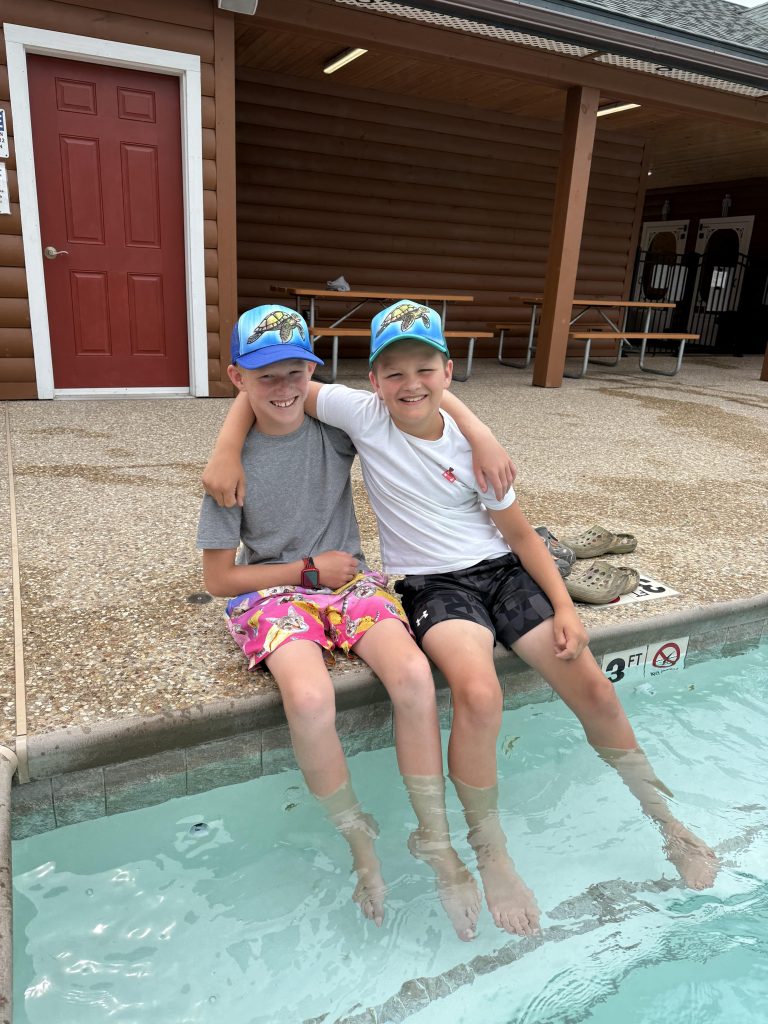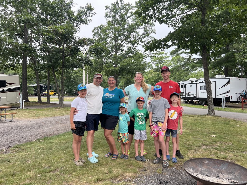 We are in Sun Retreats Cape Cod for a 4 night stay. They have a fishing dock, a pool, and a jump pad. I was most exited for the fishing dock. Pulling into our site was a struggle, we were on a massive hill and it was too tight to fit, but somehow, we figured it out after 30 minutes of straight stress.
